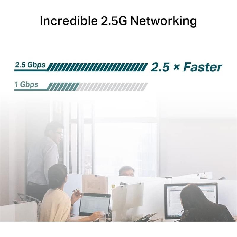 TP-Link TX201 alcanza velocidades de datos ultrarrápidas de hasta 2500 millones de bits por segundo, 2,5 veces más rápido que Gigabit Ethernet estándar. Para tareas que requieren un uso intensivo del ancho de banda, ya sea transferencia de datos local o acceso a Internet, el TX201 está a la altura de la tarea.