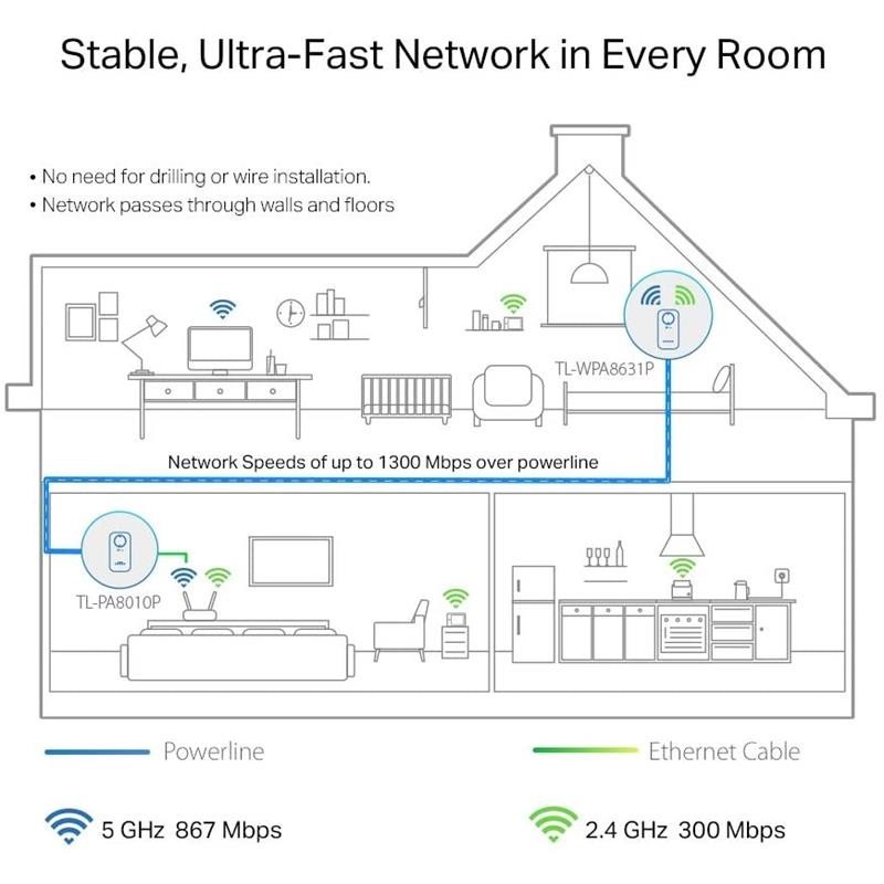 - HomePlug AV2: Ofrece transferencias ultrarápidas de velocidad powerline de hasta 1300 Mbps.