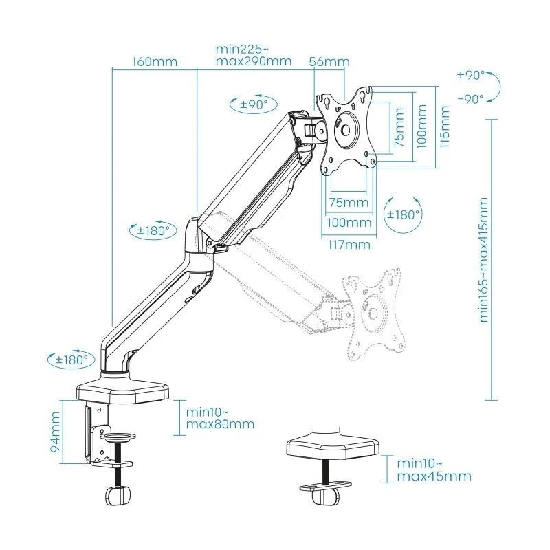 - Brazo regulable con mecanismo asistido de muelles