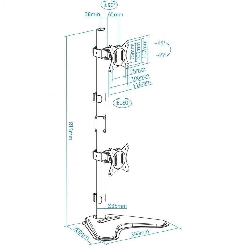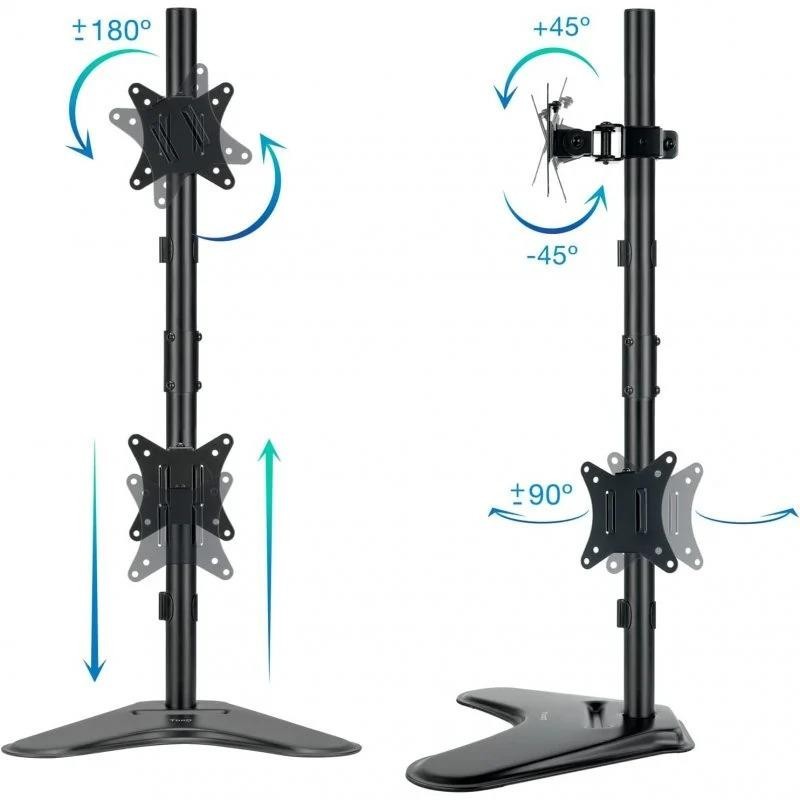 Soporte de mesa para 2 pantallas de 17" hasta 32" TooQ. Disfruta de la posición más cómoda para trabajar, ver una película o lo que tú quieras, con nuestro soporte podrás tener un escritorio limpio y ordenado. Configura y adapta la inclinación, rotación o giro de tu pantalla.