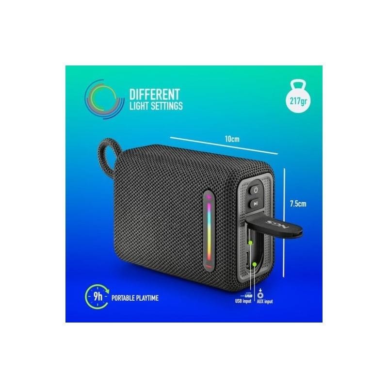 - Altavoz inalámbrico compatible con tecnología Bluetooth 5.0 para disfrutar de la música tanto en el interior como en el exterior