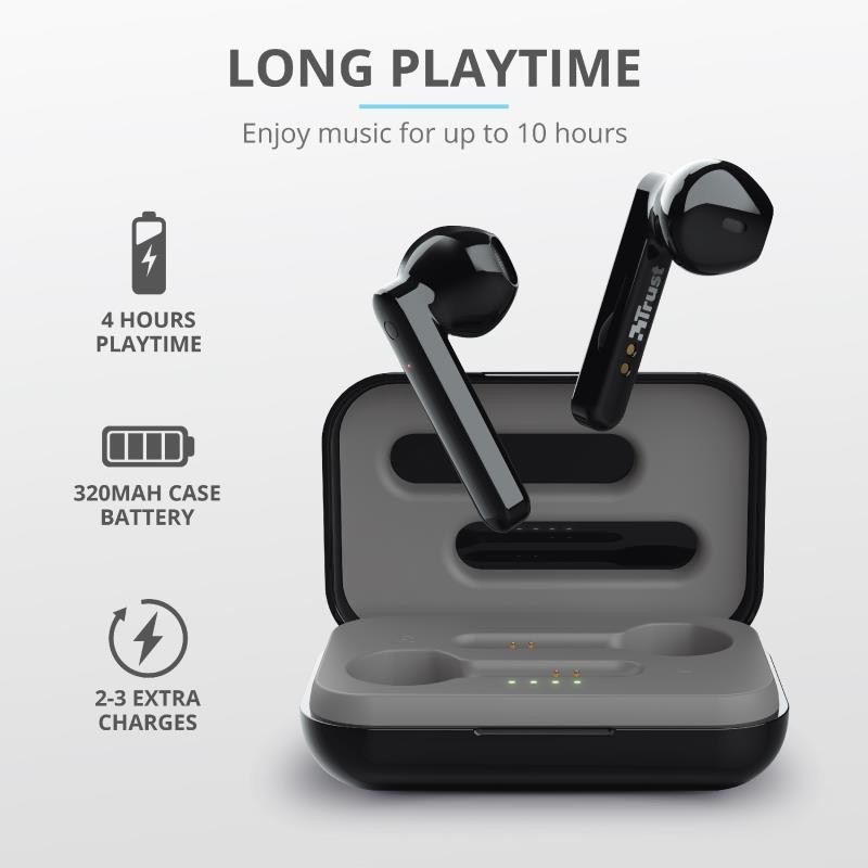 Los auriculares inalámbricos Primo Touch de Trust ofrecen libertad de movimiento con un alcance inalámbrico extralargo y funciones para cargarlos en cualquier lugar. Y, gracias a su diseño, no solo te moverás con libertad, sino también con estilo.