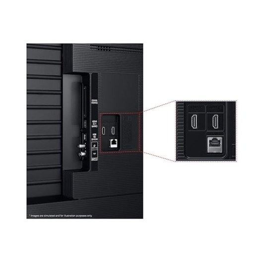 En el apartado de sonido, incorpora Object Tracking Sound Lite (OTS Lite) y Q-Symphony, que simulan audio envolvente 3D y permiten sincronizar la TV con barras de sonido Samsung compatibles. El sistema Adaptive Sound ajusta la ecualización en tiempo real según el contenido. La conectividad es total: Bluetooth 5.3, Wi-Fi 5, Ethernet, 3 x HDMI (uno eARC) y USB, facilitando la conexión de dispositivos externos y periféricos.