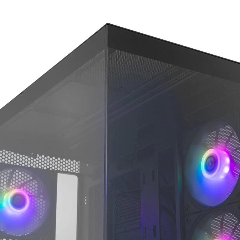 - REFRIGERACIÓN SUPERIOR. Hummer Glock viene con cuatro ventiladores ARGB Easy Link Lite instalados, estos ventiladores incluyen una nueva tecnología que permite una conexión entre ellos rápida, sin necesidad de cables, manteniendo de esta manera el interior de la caja limpio y facilitando el montaje. Pudiendo integrar hasta un total de diez, logrando un gran caudal de aire. Mantén tus componentes fríos, rindiendo de la manera más eficiente. Esta caja Nox cuenta con amplias opciones de refrigeración con las que podrás instalar hasta diez ventiladores de 120 mm, uno en la parte trasera, tres en la zona lateral, tres en zona superior y tres en la zona inferior. Crea la iluminación perfecta para tu setup.