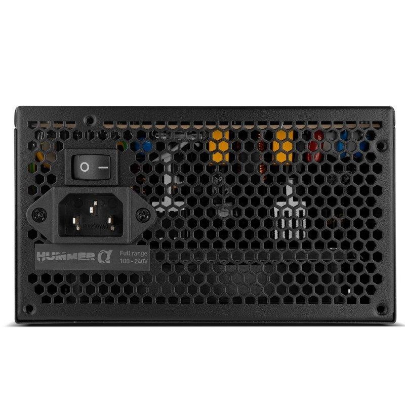- ALTA EFICIENCIA La Hummer Alpha 600 W es una fuente potente que garantiza una óptima eficiencia, muy fácil de montar gracias sus cables de gran calidad, planos y extralargos. La Hummer Alpha 600 W cuenta con una protección superior, incluidas las protecciones OVP, SCP, OPP, SIP y UVP para un funcionamiento seguro, pudiendo confiar en ella todos y cada uno de los preciados componentes del equipo.