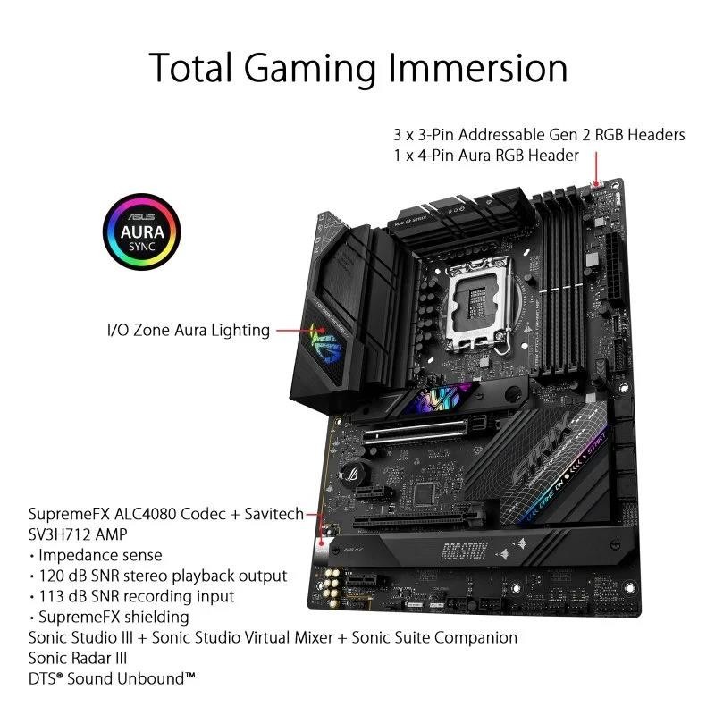 La placa base ASUS ROG STRIX B760-F GAMING WIFI está diseñada para alojar los procesadores híbridos Intel Core de 12ª y 13ª generación en el zócalo Intel LGA 1700. Será la base elegida para una configuración centrada en el rendimiento y la productividad. Diseñadas para jugadores exigentes que buscan rendimiento y fiabilidad a largo plazo, las placas base ASUS ROG STRIX Gaming te permiten sacar el máximo partido a tus componentes.