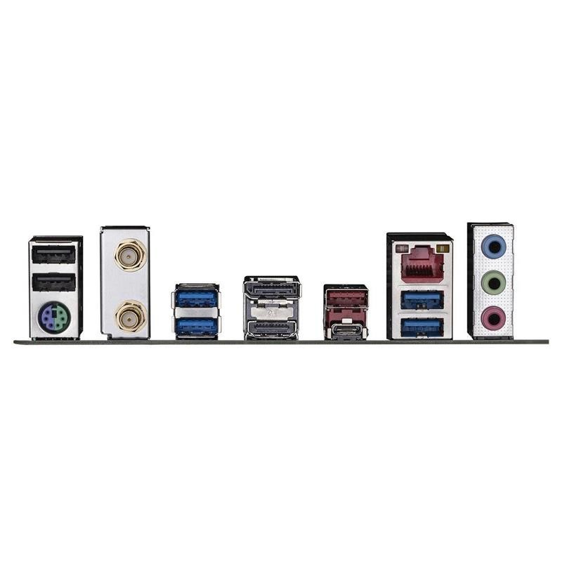 - 2 x USB 2.0/1.1, 1 x PS/2 (teclado/rato), 1 x USB 3.2 Gen 2 Type-A (rojo), 1 x USB 3.2 Gen 1, 1 x USB 3.2 Gen 2x2 Type-C?, 1 x puerto RJ-45 y 3 x jacks de audio.