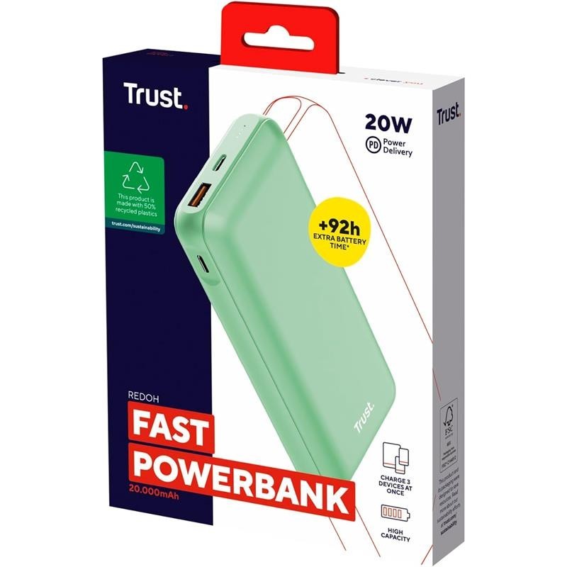 POWERBANK TRUST REDOH 20000MAH USB-A + X2 USB-C GREEN