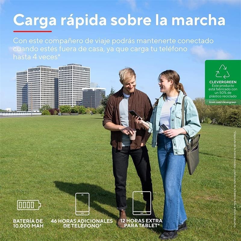 POWERBANK TRUST PRIMO SLIM 10000MAH 2A USB + USB-C + MICRO-USB ECO BLACK