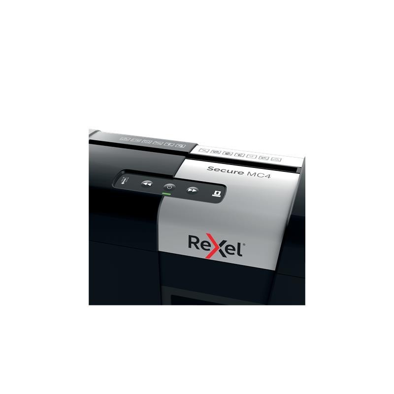 La gama de destructoras de papel Secure de Rexel es ideal para destruir sus documentos personales e información confidencial en casa. La máquina destructora Secure MC4 destruye hasta 4 hojas de papel A4 (80 grs) de una sola vez a través de la ranura de alimentación manual en partículas de nivel de seguridad P-5 (2x15 mm).