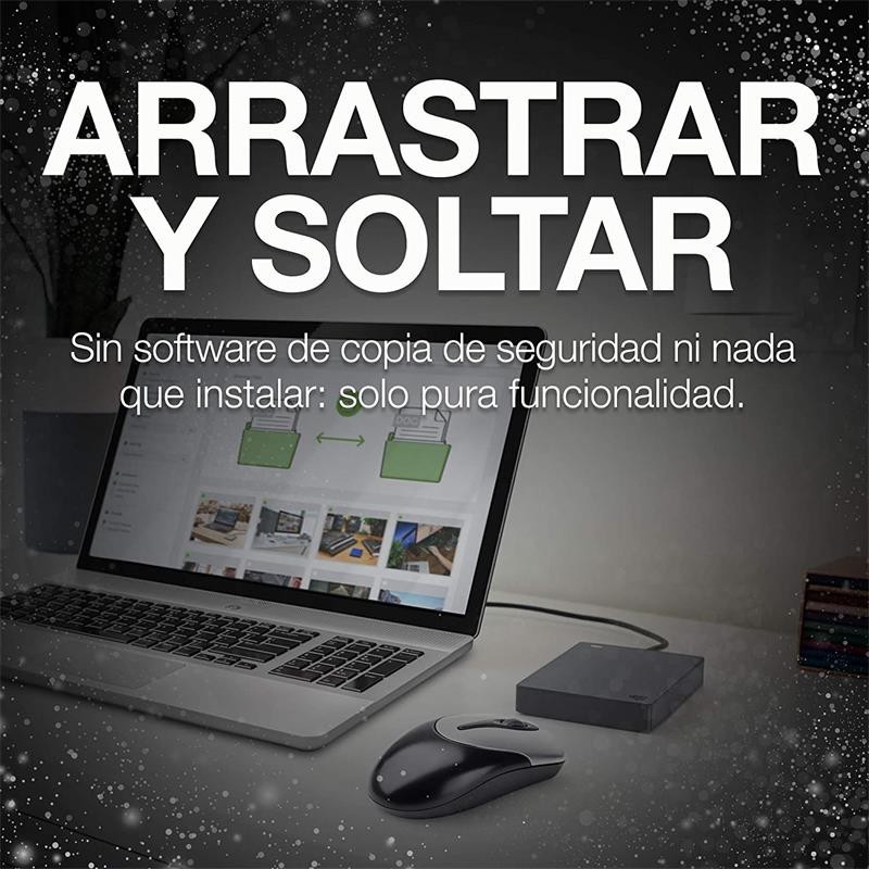- Lleve su disco duro para copias de seguridad a cualquier lugar: Ligera, compacta y totalmente portátil, Seagate Basic está diseñada para que pueda llevar cargas de archivos a donde vaya. Solo ponga el disco duro externo con cable USB 3.0 en su bolso, sáquelo y conéctelo a su computadora con el cable incluido.