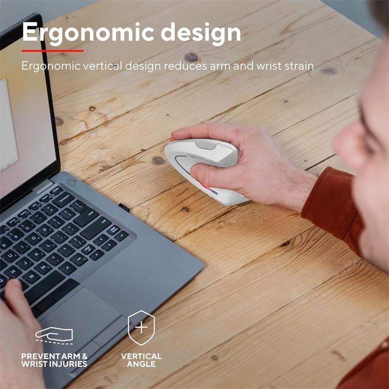 Trust Verto ratón inalámbrico con diseño vertical ergonómico para reducir la tensión en muñecas y brazos.