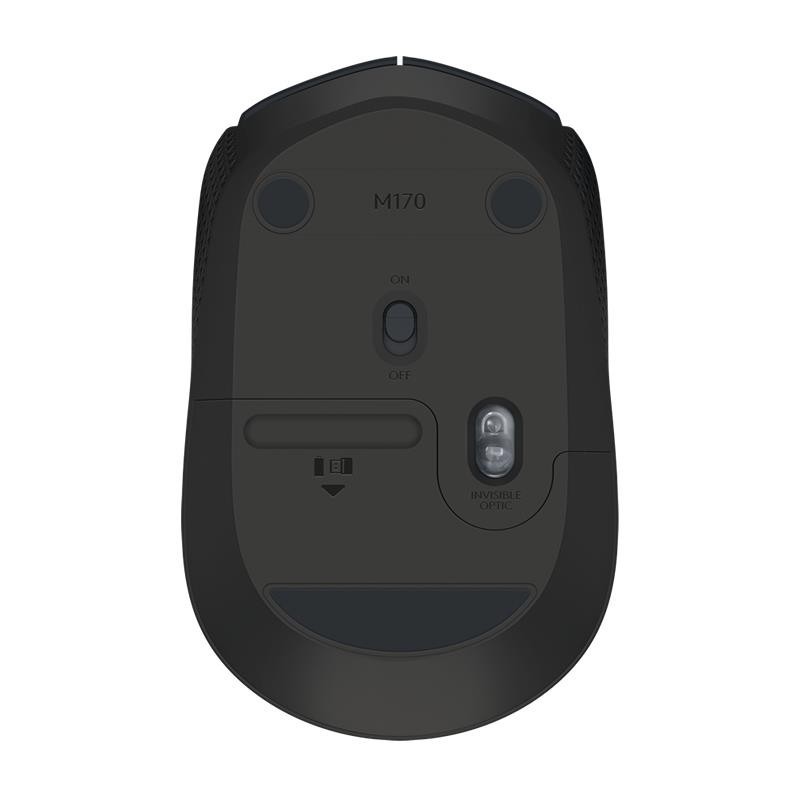 Logitech M170, Ambidextro, óptico, RF inalámbrico, 1000 DPI, Negro, Gris