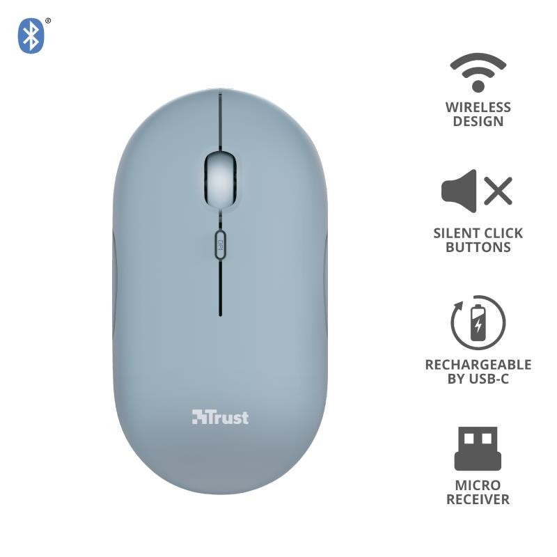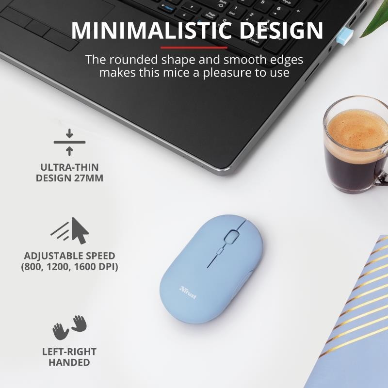 El ratón Puck de Trust está diseñado para ser la solución ideal ante cualquier exigencia del trabajo fuera de casa. Este ratón inalámbrico ultrafino es lo bastante pequeño para llevarlo encima sin por ello sacrificar la facilidad de uso. Está equipado con todas las funciones que necesita, como doble conectividad inalámbrica, botones silenciosos y batería recargable. Y es apto tanto para usuarios zurdos como diestros.