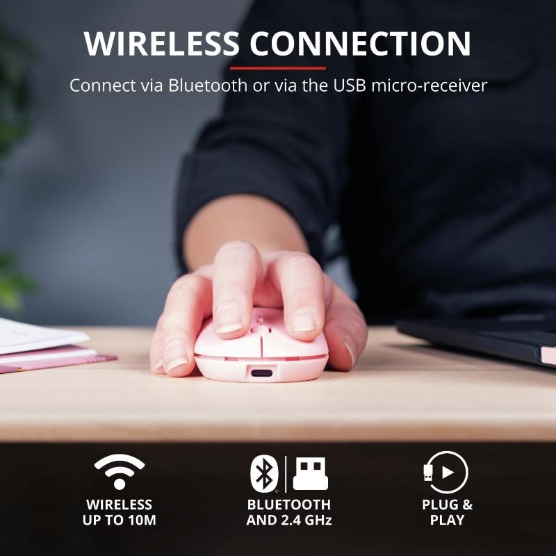 El ratón Puck de Trust está diseñado para ser la solución ideal ante cualquier exigencia del trabajo fuera de casa. Este ratón inalámbrico ultrafino es lo bastante pequeño para llevarlo encima sin por ello sacrificar la facilidad de uso. Está equipado con todas las funciones que necesita, como doble conectividad inalámbrica, botones silenciosos y batería recargable. Y es apto tanto para usuarios zurdos como diestros.