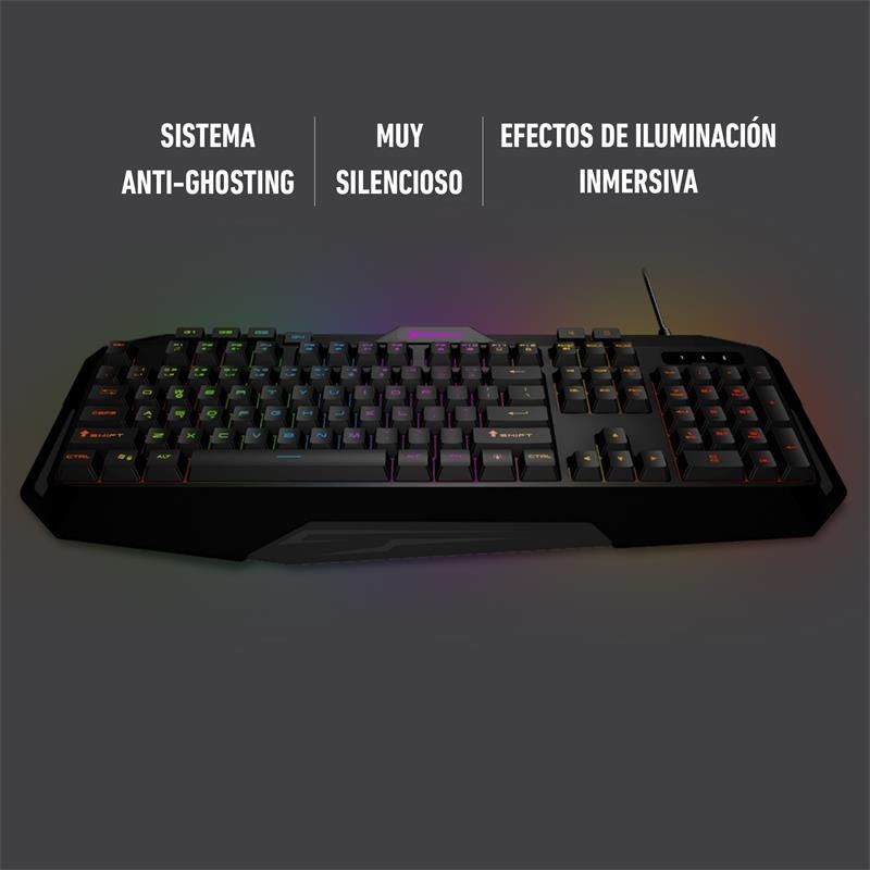Acompañado de 9 modos de iluminación RGB podrás adornas tu escritorio como más te guste. Además, sus teclas tambien vienen iluminadas para poder disfrutar de tus noches de juego sin necesidad de ninguna otra fuente de luz.