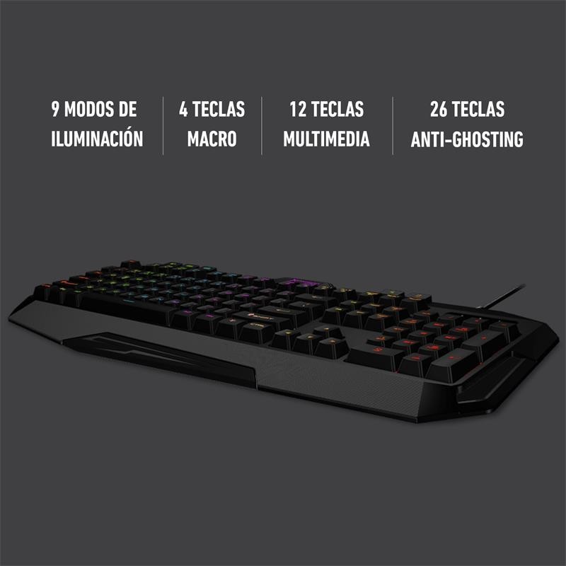 Sus 4 botones macro en los que podrás guardar combinaciones de teclas para agilizar tus tareas favoritas dependiendo del juego al que estés jugando y convertirte así en un rival temible y junto a sus 12 teclas multimedia podrás controlar diferentes tu reproductor de música sin necesidad de cambiar de ventana en tus directos o partidas.