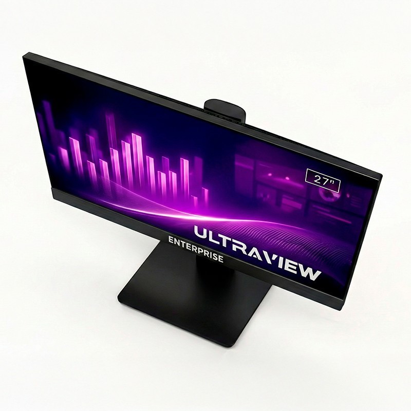 Monitor Enterprise UltraView 27" IPS QHD (2560×1440) con 120Hz y 2 ms, brillo 350 cd/m², HDR, Adaptive Sync, Flicker-Free y Low Blue Light. Conectividad premium: HDMI×2 + DP + USB 2.0×2 + USB-C (host), salida de auriculares y montaje VESA 100×100.