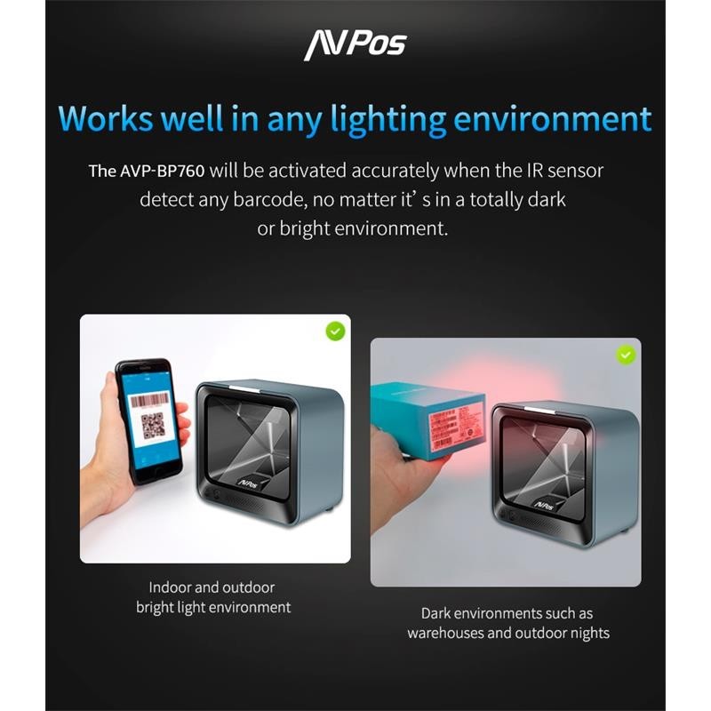 El AVPos BP760 es un lector de códigos de barras de alto rendimiento diseñado para ofrecer una lectura precisa y rápida de códigos 1D y 2D. Equipado con un sensor de imagen CMOS de alta calidad, este lector es capaz de capturar códigos incluso en condiciones difíciles, como aquellos que están mal impresos, dañados o tienen bajo contraste. Su robustez y su avanzada tecnología de escaneo lo hacen ideal para una amplia gama de aplicaciones, incluyendo retail, logística, y más.